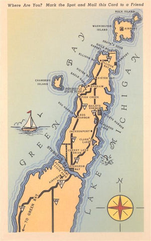WI-452 Door Peninsula Map - Vintage Image