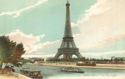 WT-13 Eiffel Tower and Seine, Paris, France - Vintage Image
