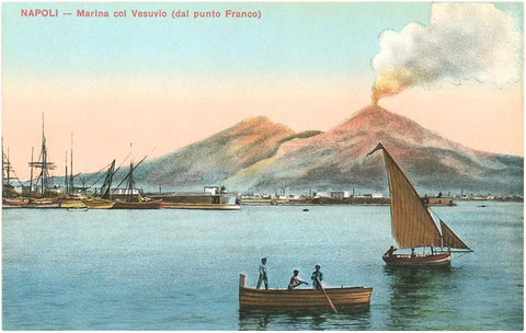 WT-27 Naples Harbor with Smoking Vesuvius - Vintage Image