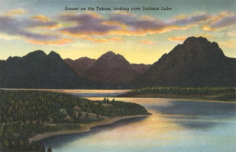WY-115 Jackson Lake, Sunset - Vintage Image