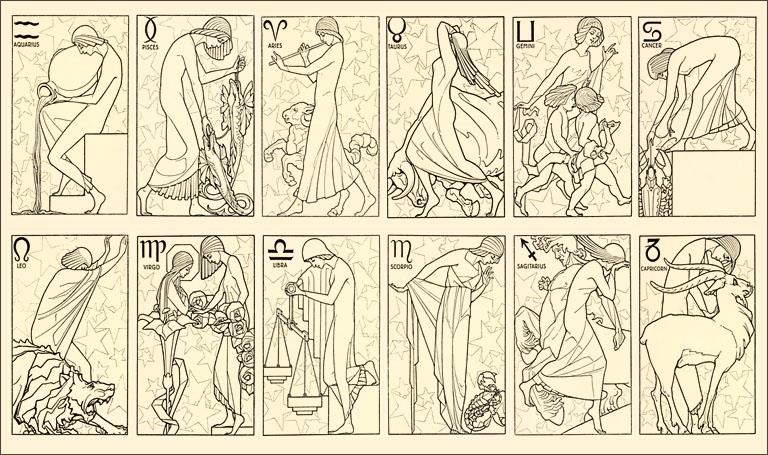 ZC-74 Twelve Zodiac Signs - Vintage Image