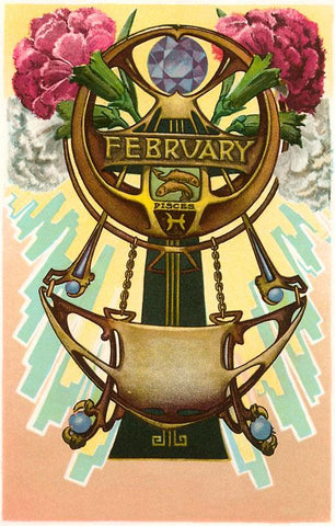 ZC-14 Art Nouveau February, Pisces - Vintage Image