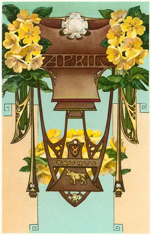 ZC-16 Art Nouveau April, Taurus - Vintage Image