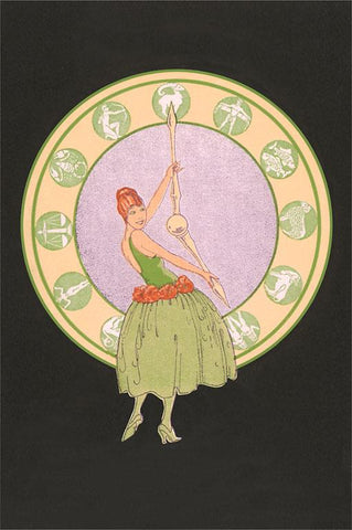 ZC-87 Woman with Zodiac Clock - Vintage Image