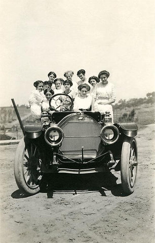 AA-161 Crowd of Women in Old Car - Vintage Image