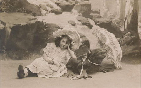 AA-278 Little Girl with Giant Frog - Vintage Image