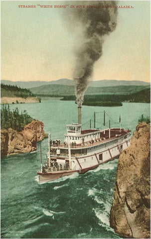 AK-49 Steamer in Five Finger Rapids, Alaska - Vintage Image