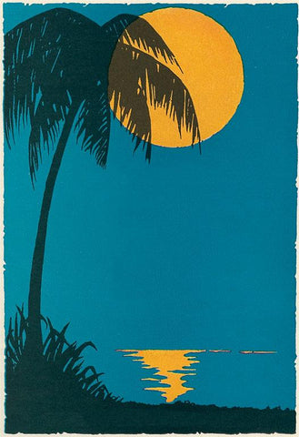 AM-336 Sunset over Ocean with Palm Tree - Vintage Image