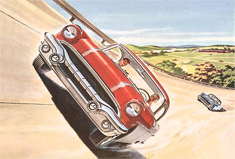 AM-598 Cars on Cambered Roadway - Vintage Image