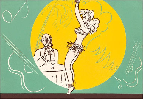 AM-642 Cartoon Man Watching Stripper - Vintage Image