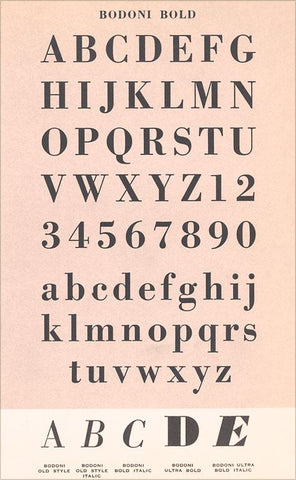 AM-912 Font Sample Chart, Bodoni Bold - Vintage Image