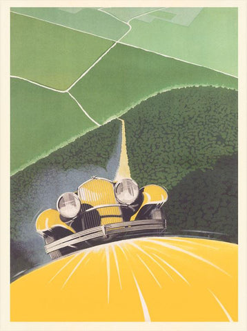 AM-928 Car Driving Uphill - Vintage Image