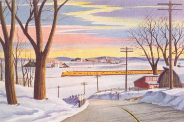 AM-964 Rural Scene with Train - Vintage Image