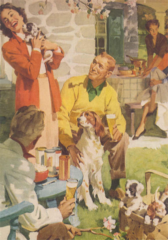 AM-971 Outdoor Party with Puppies - Vintage Image