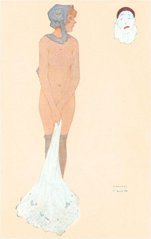 AT-54 Semi-nude Woman with Pierrot Head, Art Nouveau - Vintage Image