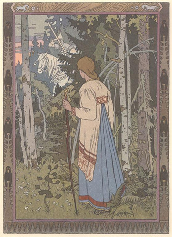 AT-458 Knight and Maiden in Woods - Vintage Image