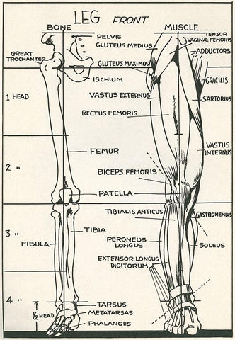 AY-85 Drawing of Bones and Muscles of the Legs - Vintage Image