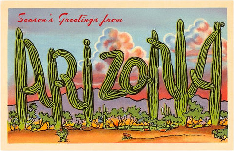 AZ-332 Season's Greetings from Arizona, Saguaros - Vintage Image