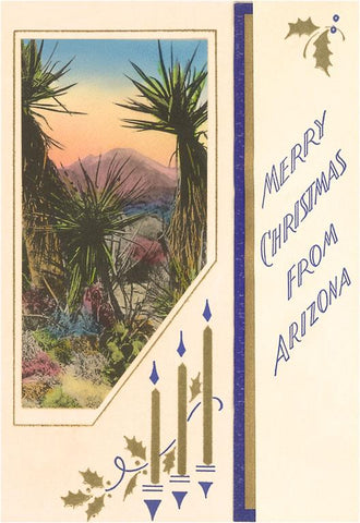 AZ-352 Merry Christmas from Arizona, Desert Scene - Vintage Image