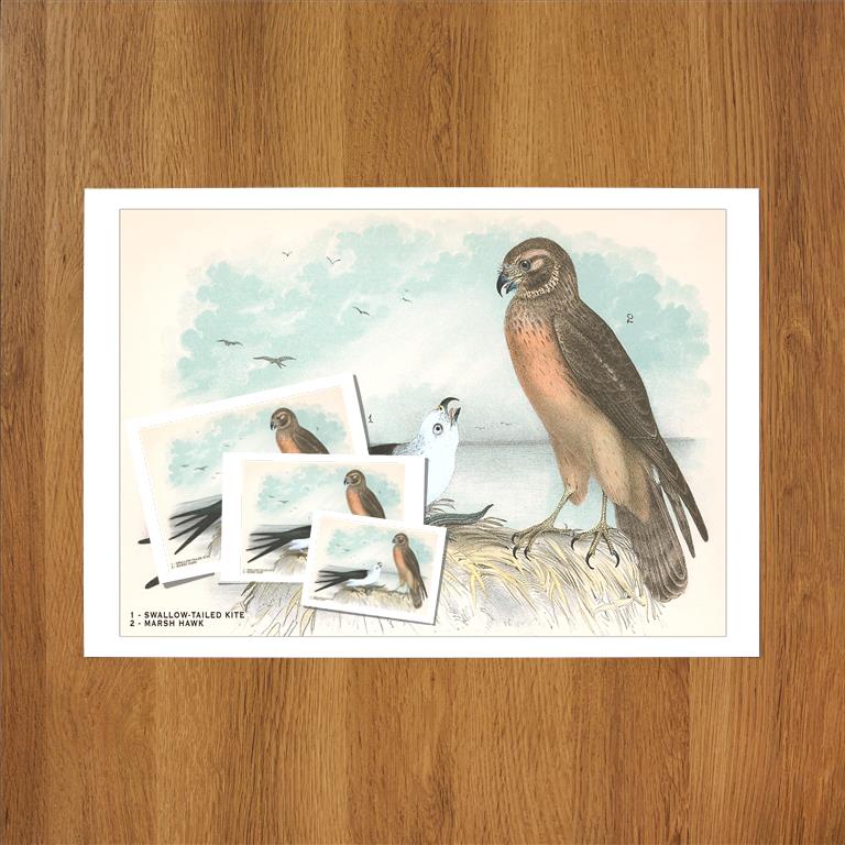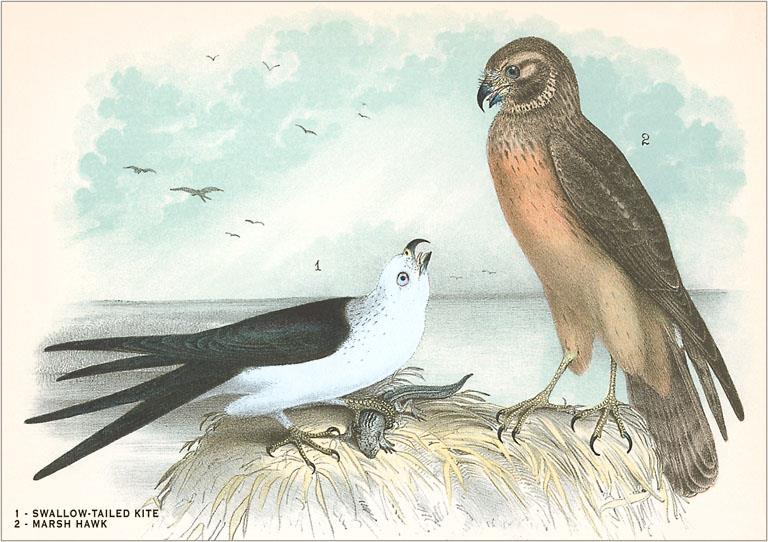 BD-53 Swallow-Tailed Kite and Marsh Hawk - Vintage Image