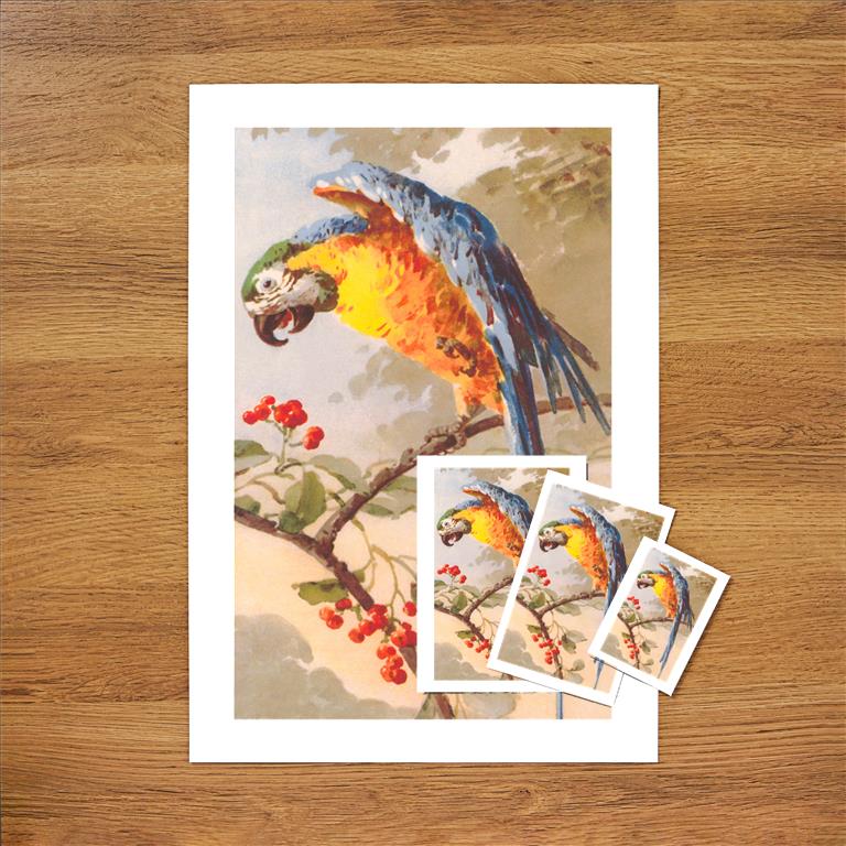 BD-87 Macaw on Cherry Tree - Vintage Image