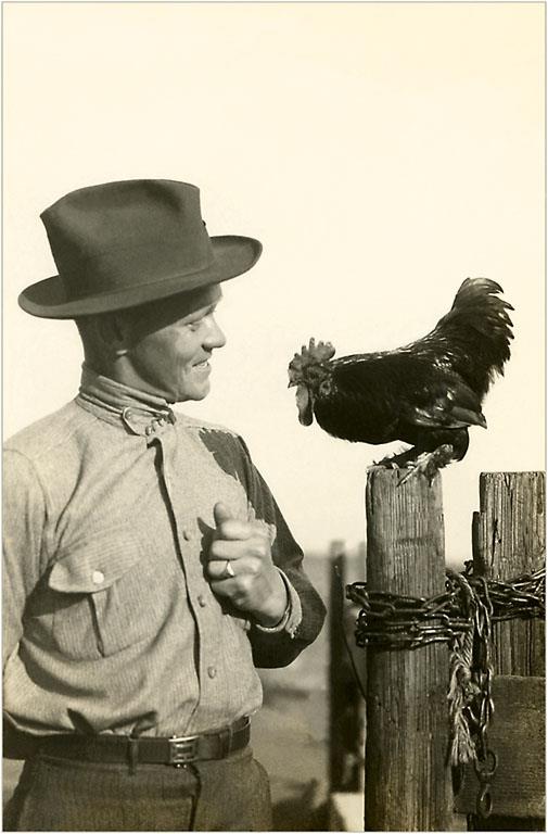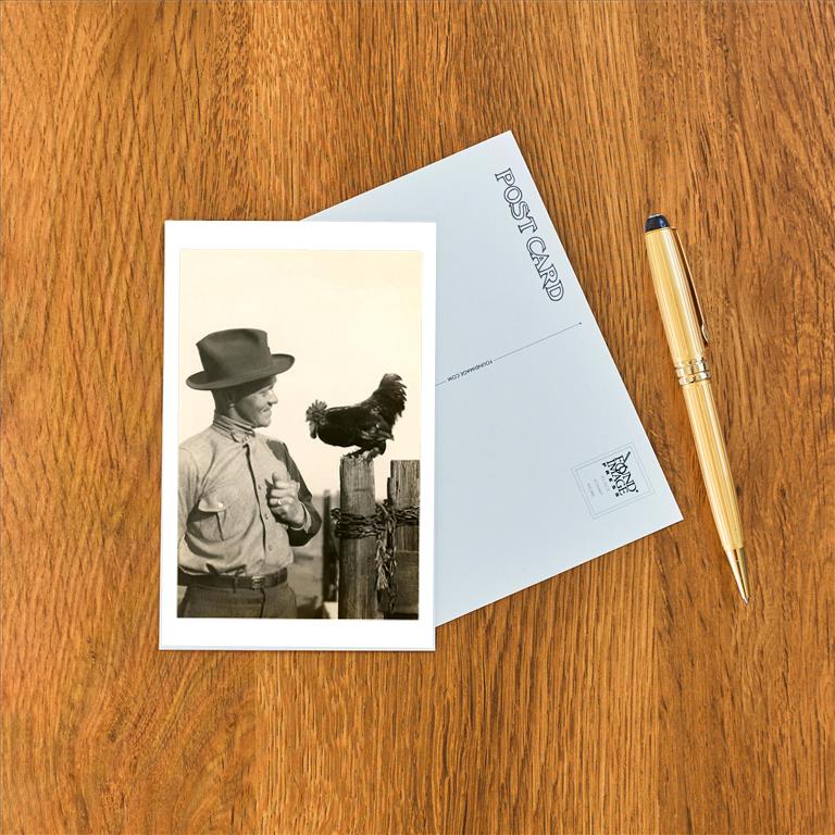 BD-104 Farmer Talking to Rooster - Vintage Image