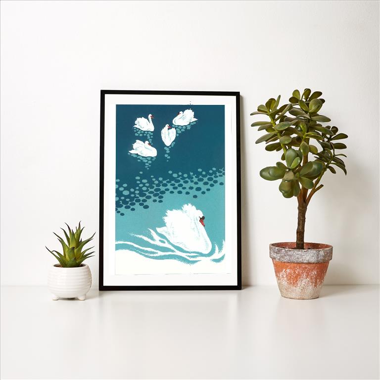BD-131 Swans on the Pond - Vintage Image