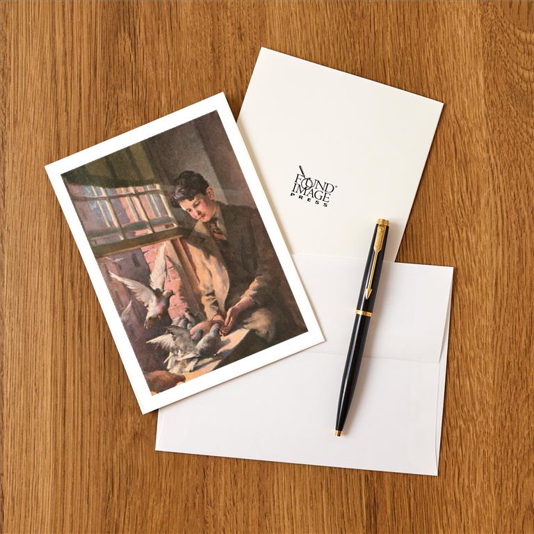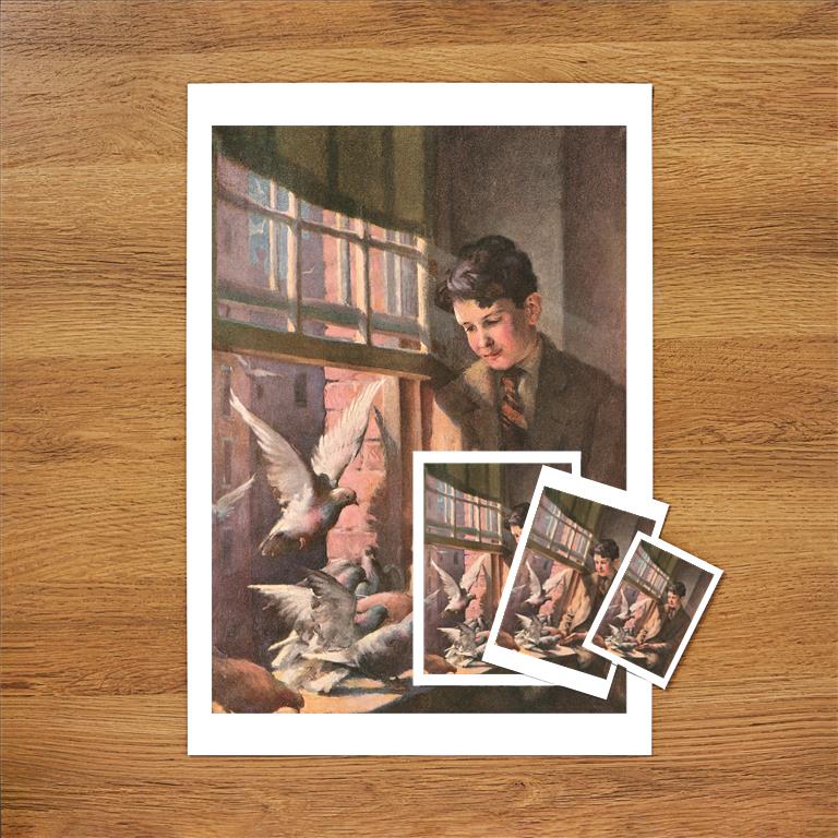 BD-167 Painting of Boy with Pigeons - Vintage Image