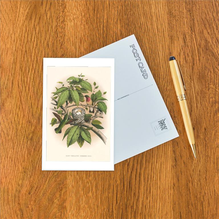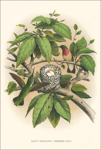 BD-195 Ruby-Throated Hummingbird Nest and Eggs - Vintage Image