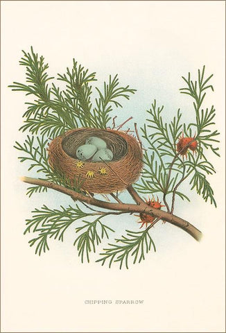 BD-200 Chipping Sparrow Nest and Eggs - Vintage Image