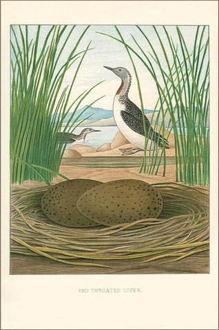 BD-212 Red-Throated Diver Nest and Eggs - Vintage Image