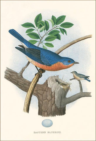 BD-219 Eastern Bluebird Nest and Eggs - Vintage Image