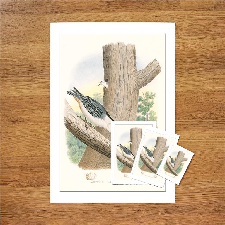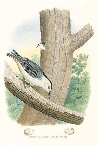 BD-223 White-Bellied Nuthatch Nest and Eggs - Vintage Image