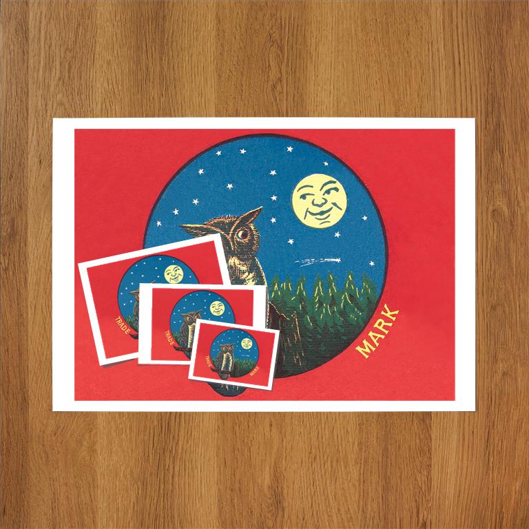 BD-252 Owl and Moon - Vintage Image