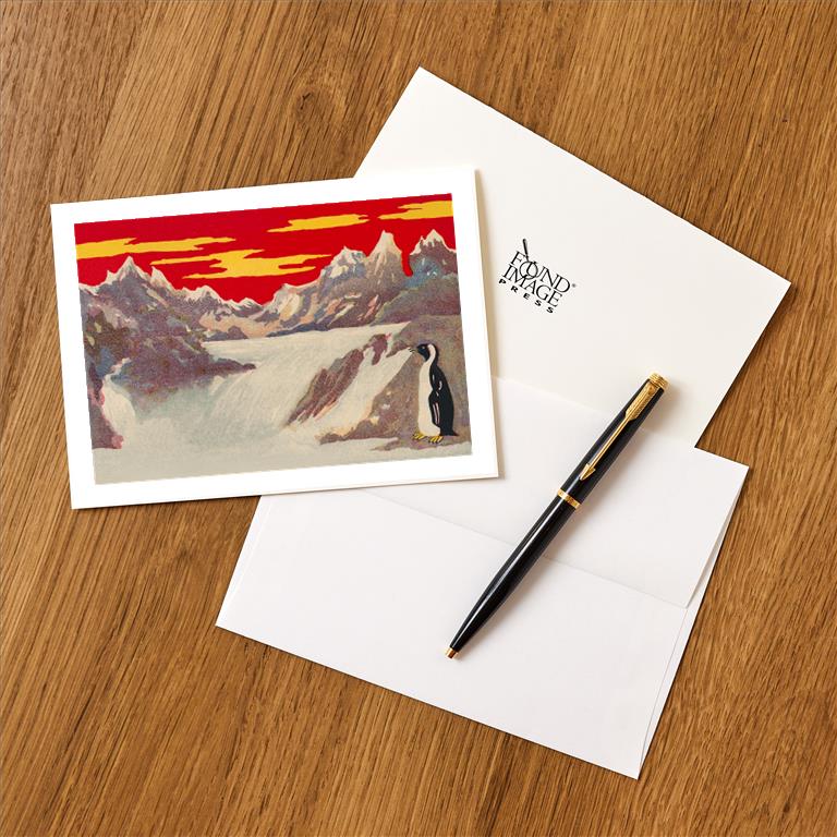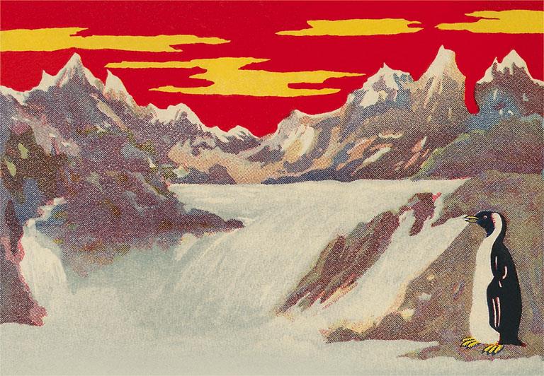 BD-449 Penguin with Red Sky - Vintage Image