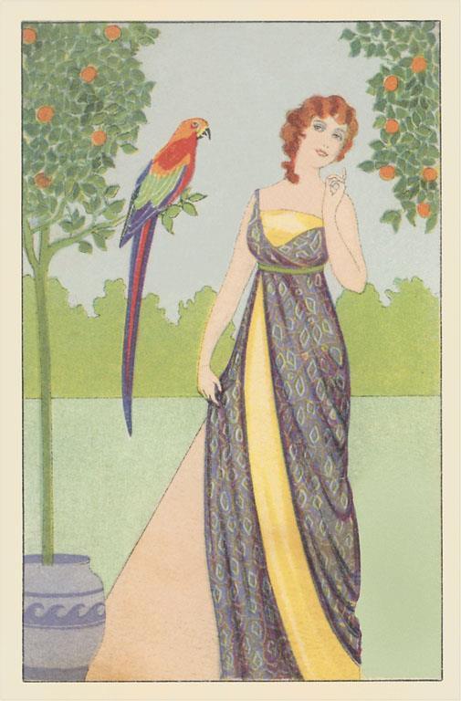 BD-523 Woman with Macaw - Vintage Image