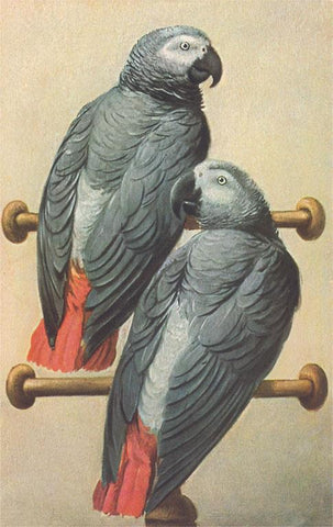 BD-545 African Gray Parrots - Vintage Image