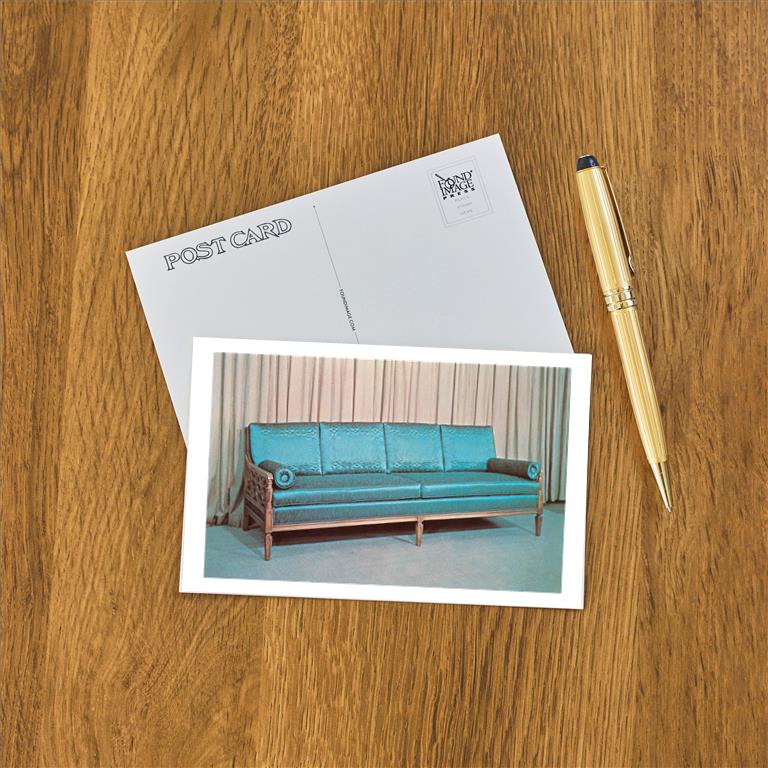 BF-66 Blue Sofa with Round Arm Rests - Vintage Image