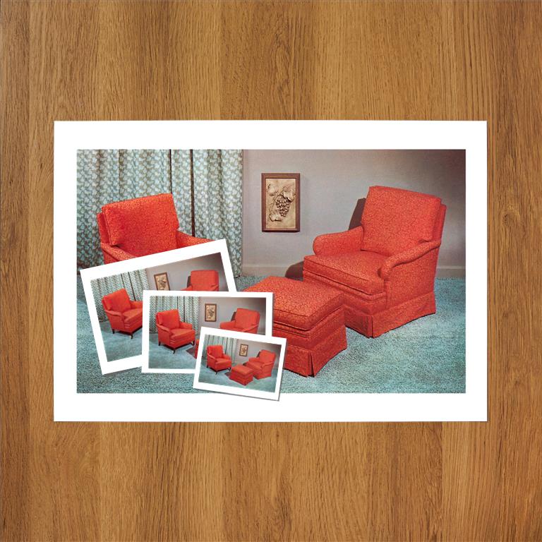 BF-74 Red Chairs and Ottoman - Vintage Image
