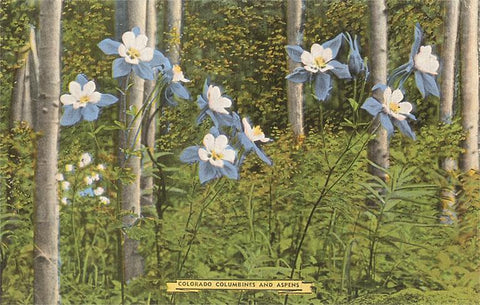 CO-02 Colorado Columbines and Aspens - Vintage Image