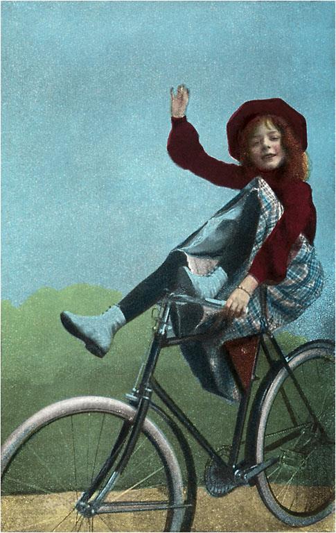 CY-10 Girl Trick Riding on Bicycle - Vintage Image