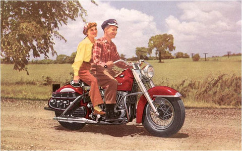 CY-43 Couple on Red Motorcycle - Vintage Image
