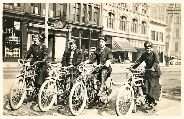 CY-102 Four Bicyclists Downtown - Vintage Image