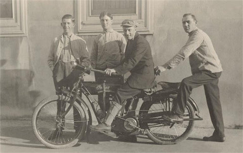 CY-154 Four Men with Vintage Motorcycle - Vintage Image