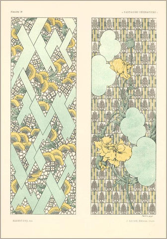 DA-376 Geometric Lightning Bolts, Flowers - Vintage Image
