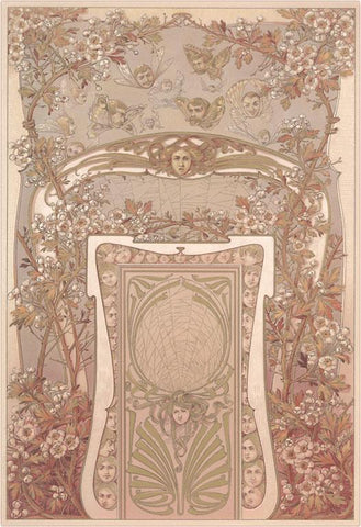 DA-383 Sepia-Toned Floral Patterns with Faces - Vintage Image
