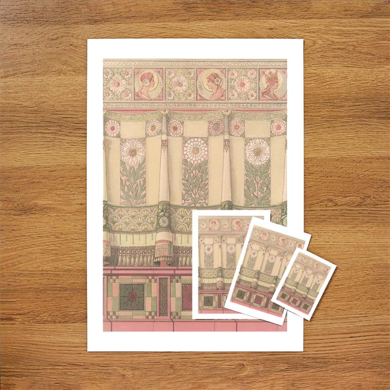 DA-386 Trompe L'oeil Draperies, Women's Heads - Vintage Image