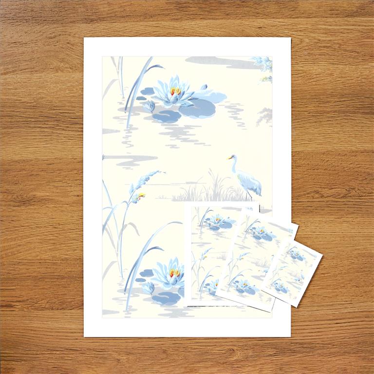 DA-441 Blue Pond with Herons - Vintage Image