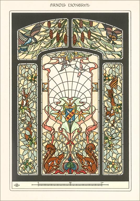 DA-470 Art Nouveau Stained Glass - Vintage Image