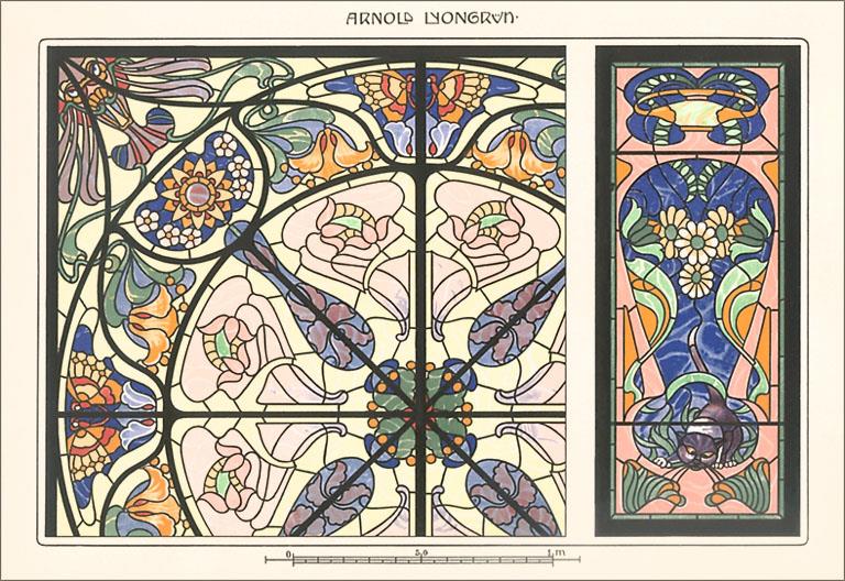 DA-478 Art Nouveau Stained Glass - Vintage Image